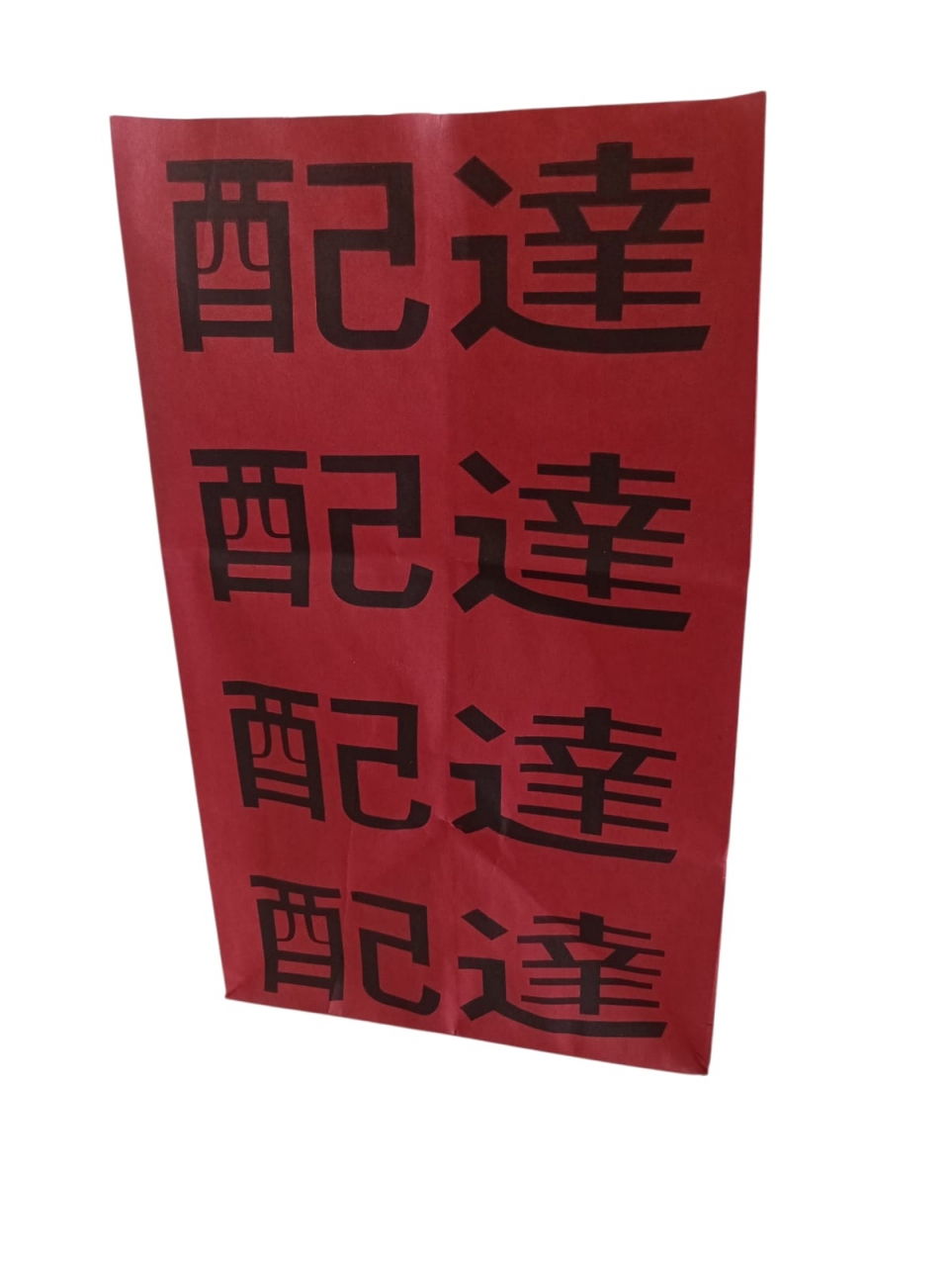 Produto: Saco de papel kraft para delivery/embalagem (com design de pagoda e escrita oriental).