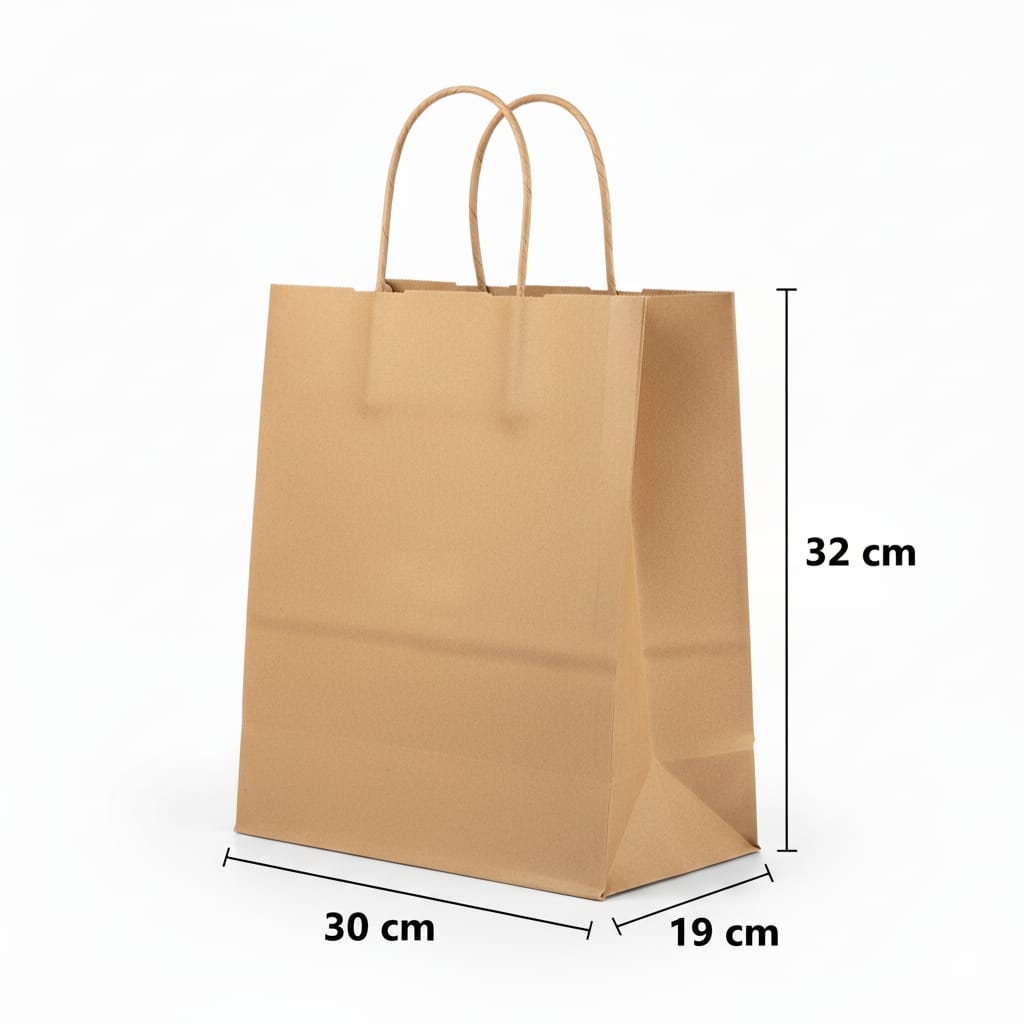 Descrição: Kit 50 Sacolas Kraft G (30x19x32)